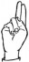 На ћирилици написано КОЈАДИН МАНДИЋ састоји се из 13 слова [?]. Исписано ћириличном једноручном азбуком за глувонеме: